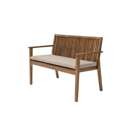 Mona2-местная садовая скамья с подлокотниками, массив акации, бежевые подушки, 118×60×82 см