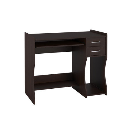 Свободная рабочая поверхность компьютерного стола предусматривает место для монитора, аудио колонок и негабаритных предметов для письма или компьютерных аксессуаров. Имеются два ящика на роликовых направляющих, выдвигающаяся полка для клавиатуры, место для системного блока и полка для папок внизу стола.