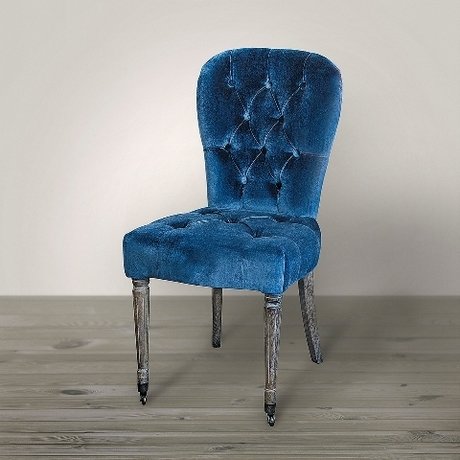 Стул из натурального дерева с текстильной бархатистой обивкой на резных ножках. Передняя пара ножек оборудована колесиками.