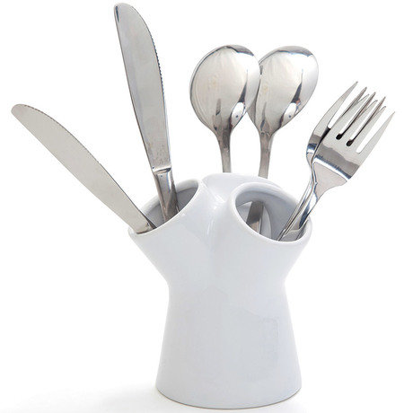 Простой и симпатичный органайзер с тремя выемками для разных столовых приборов. Вилки, ложки и ножи можно красиво поставить на кухонном или обеденном столе. Так же можно использовать как сушилку для столовых приборов после мытья.