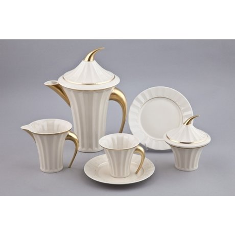 Декор драгоценными металлами тонко сочетается с рельефом «раскрытого папируса», который имеет фарфор. Идея имитировать металл, материал первоисточника, и воссоздать его в фарфоре, удалась. Так появился дизайнерски свежий, неподвластный времени декор «Egypt» от Rudolf Kampf.