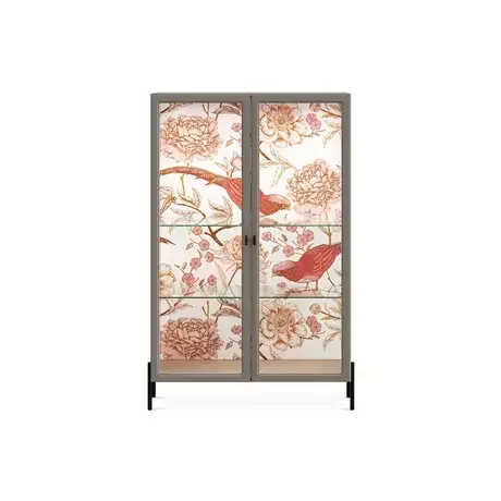 Banksy — коллекция оригинальных шкафов-витрин и сервантов с художественными акцентами. В основе дизайна — дань классическим формам и стремление к актуальным тенденциям. Внушительный корпус балансирует на изящных ножках из металла. Что делает габаритные формы визуально легкими. Также за воздушность отвечают дверцы и полки из стекла. Вместе с внутренней подсветкой они обеспечивают «выставочное» хранение книг, посуды, косметики, декора и других предметов. Изображения в духе шинуазри являются колоритными элементами интерьера. Они моментально притягивают взгляд и становятся фокусной точкой, привнося в пространство разнообразие, таинственность, дух приключений. С помощью Banksy вы поддержите комфорт и индивидуальность как домашних локаций: гостиной, спальни, гардеробной, обеденной группы, так и бизнес-пространств: кафе, студий, салонов, шоурумов.
