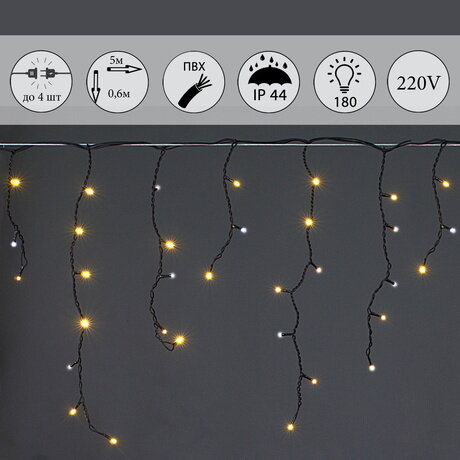 A-056AR WW/W FLASH светодиодная гирлянда "бахрома" 5x0.6м 180LED черный провод влагозащищен.