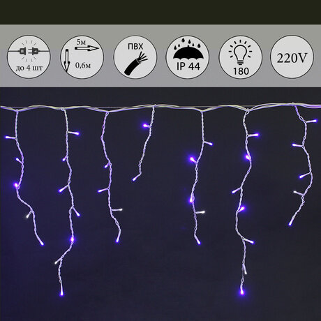 Название: | A-056R BL/WT FLASH светодиодная гирлянда "бахрома" 5x0.6м 180LED белый провод влагозащищен. |