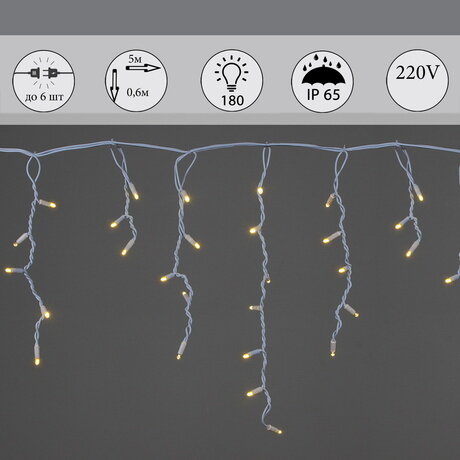 A-057B WW гирлянда светодиодная 5х0,6м 180LED в виде "бахрома", провод белый, морозостойк.