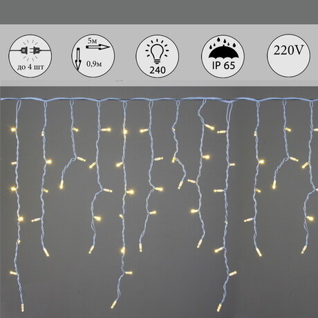 Название: | A-517 WW гирлянда светодиодная "Бахрома", 5х0,9м, 240LED, провод белый, морозостойкий |