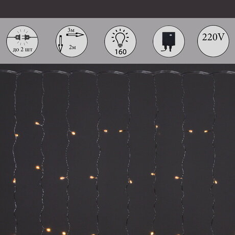 Название: | A-960 WW светодиодный занавес 3х2м, 160 LED, прозрачный провод, с контроллером |