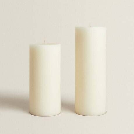 Цилиндрическая восковая свеча доступна в двух размерах. Идеально подходит для фонарей.