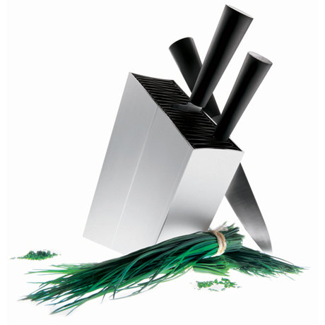 Для любых типов ножей или других приборов. Стильный металлический корпус с оригинальной подкладкой из пластика выглядит необычно и привлекает внимание. Ножи и другие приборы надёжно отделены друг от друга. Отлично подойдёт для стильных современных кухонь. Подкладку можно вынимать для чистки, а внутреннее отделение можно мыть в посудомоечной машине.