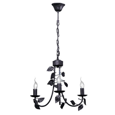Назначение светильника: для гостиной, Стиль светильника: ковка, Тип: потолочная, Материал светильника: металл, Длина: 450, Ширина: 450, Высота: 850, Количество ламп: 3 шт, Тип лампы: накаливания, Мощность: 40 Вт, Патрон: Е14, Пульт ДУ: нет, Цвет арматуры: серебро/черный