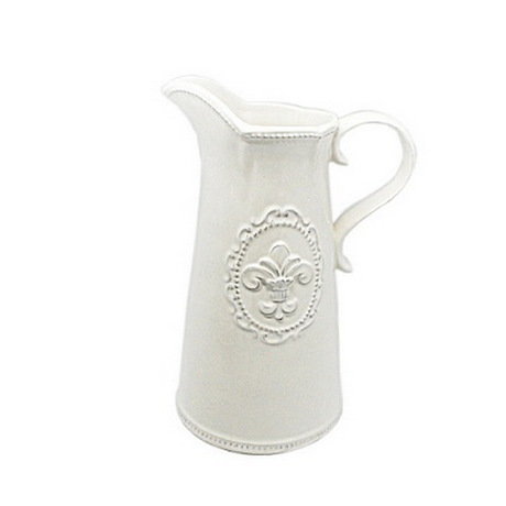 Белый керамический кувшин из коллекции "Вензель" украшен оттиском в виде цветка лилии.