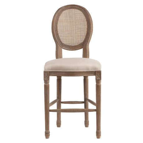 Барный стул Vintage French Round Cane Back Кремовый Лен