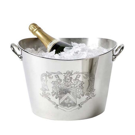 Ведро для льда под одну бутылку шампанского. Декоративная гравировка старинного герба. Цвет: никель.