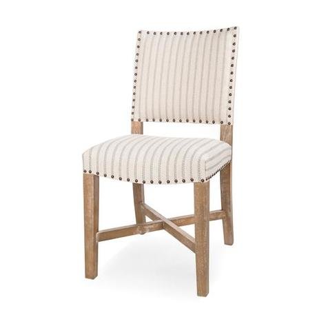 Классический комфортный стул в уютной белой обивке в полоску.